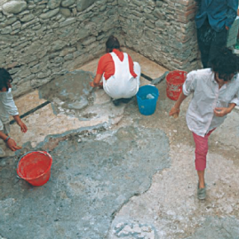 In questa fase, particolare cura è stata dedicata alla parte di terriccio incrostato sulla superficie dell’intonaco ed in determinati casi si è proceduto all’asportazione meccanica di tale sedimentazione con l’ausilio del bisturi.